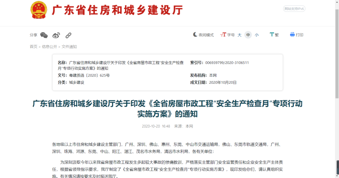 關注 | 廣東省啟動開展房屋市政工程“安全生產(chǎn)檢查月”專項行動